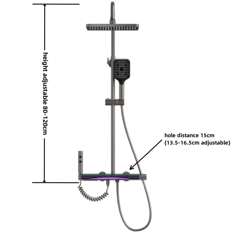 Profitez d’une expérience de douche haut de gamme grâce à cette colonne multifonctions avec affichage numérique LED. Dotée de jets massants, d'une douche pluie et d’une cascade relaxante, elle transforme votre salle de bain en véritable espace spa.