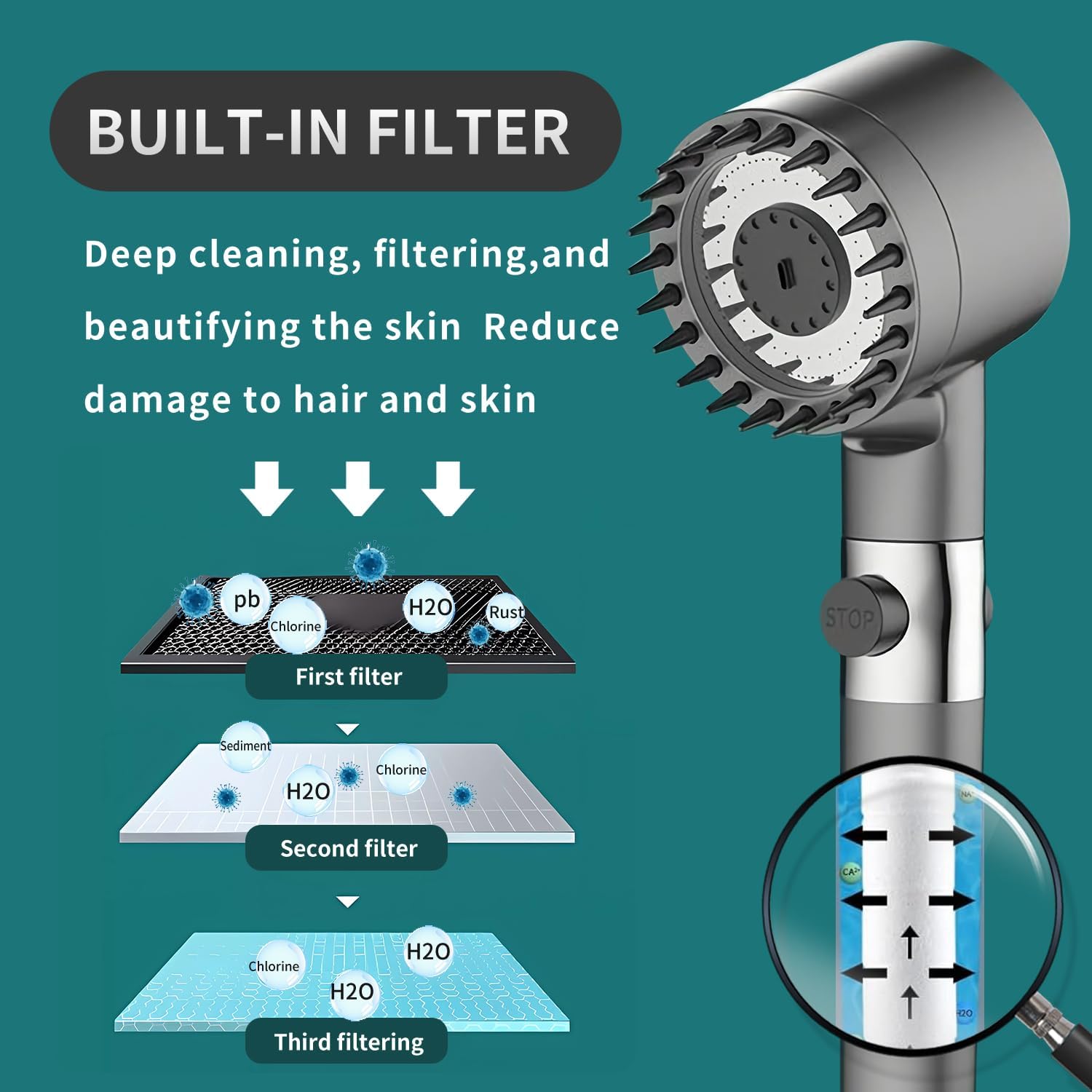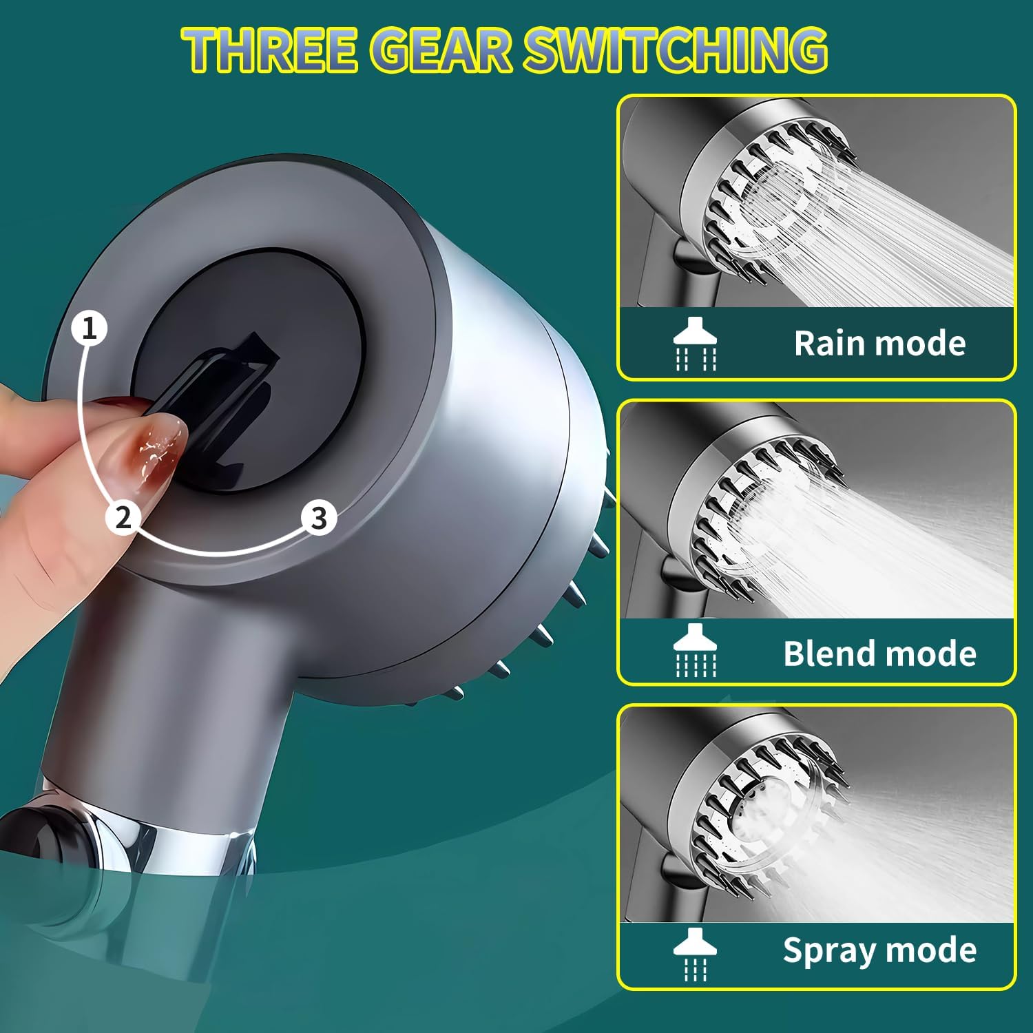 - 3 modes de débit d'eau réglables : pluie puissante, mode combiné, et mode pulvérisation