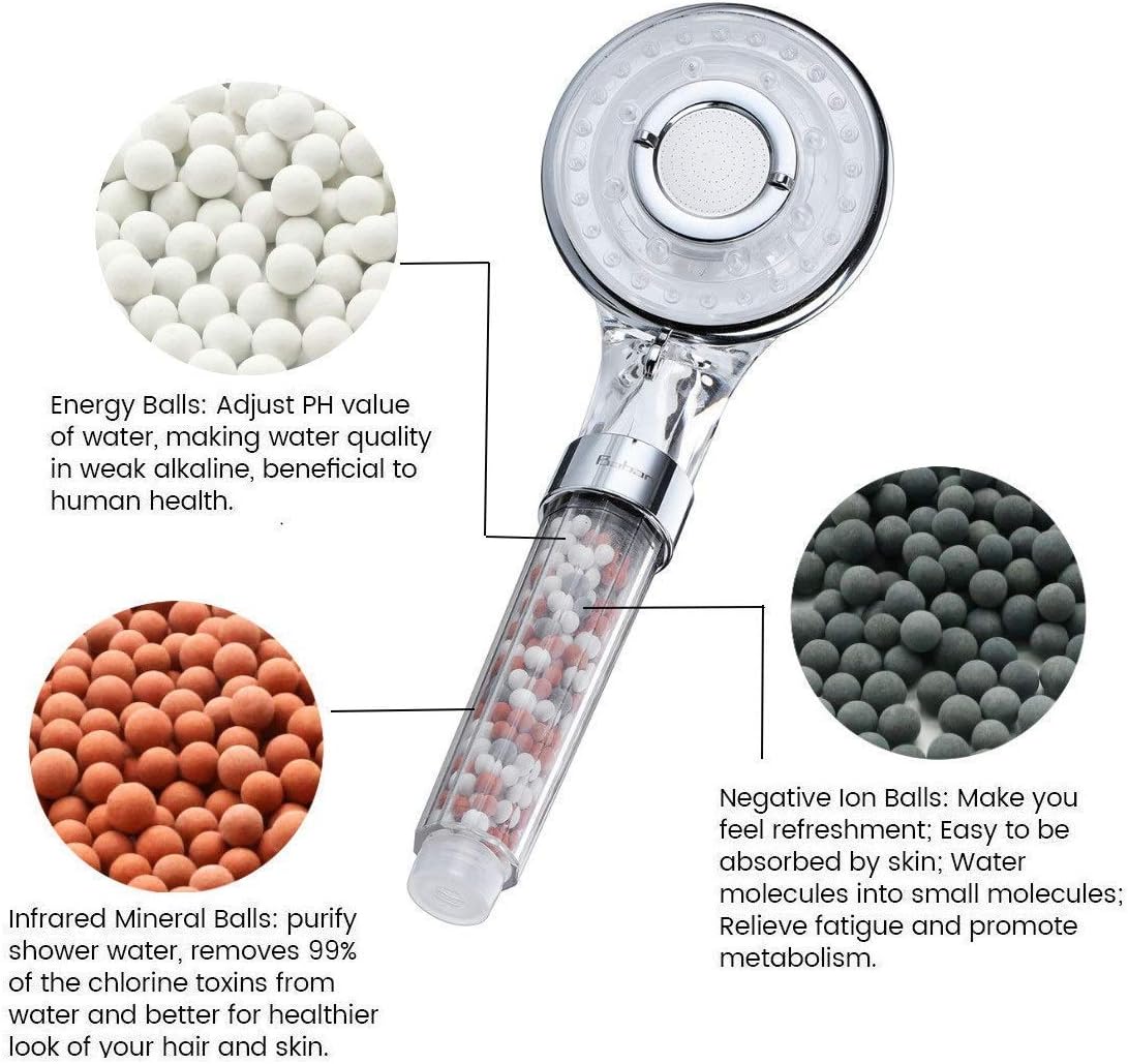 Expérience de Douche Saine : Notre filtre à sphères minérales peut éliminer le chlore, les toxines, les métaux lourds, les impuretés, les produits chimiques nocifs, les odeurs et les bactéries, améliorant ainsi la santé des cheveux et de la peau. Les petites pierres filtrantes avec ions négatifs soulagent la fatigue et le stress, et améliorent votre santé.